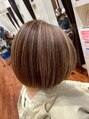 ハイライトベージュカラー大人可愛い丸み前下がりショートボブ/ホットペッパービューティー