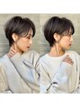 【気に入って頂いたスタイルは、ブックマークをしてご提示ください】baseをレザーカットでシルエットを作り、質感調整で柔らかさを出しました。丸いひし形シルエットはショートの王道です。