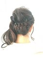 シンプルなアップスタイルがお好きな方に!編み込みとツイストを組み合わせたアップです(^^♪髪飾りとの相性も良くシンプルにも華やかにもどちらでもできます!