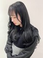 暗髪 ブルーブラック ロングレイヤー 韓国風ウェーブ巻き
