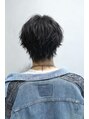 黒髪メンズカット波巻きスパイラルパーマミディアムウルフカット