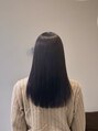 ロングストレート。縮毛矯正をして、別の日に髪色をトーンダウン。黒髪に近く、でも少し赤みのある感じ。根元が伸びても気にならない明るさにしました。