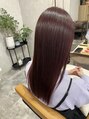 前回2ヶ月前にストレートとカラーをしたお客様のメンテナンス髪質改善カラー!今より少し明るいカシスピンクをオン♪しっかりレッドだけど春夏にむけて透明感あるカシスピンクです。