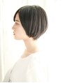 ふんわりしたトップにつるっとした表面のナチュラルショートスタイルです。長めの前髪が大人っぽい雰囲気を出す人気のスタイルです。