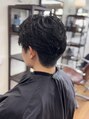 フェザーパーマ+カット。毛流れを作りやすいように巻いて仕上げました。ワックスとグリースを混ぜてスタイリングしてやるのがオススメ