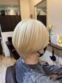全体は抜きっぱなしのブロンドショート少し雰囲気をいつもと変える為にブロンドにも合う柔らかいペールピンクをしのばせています。髪を動かすと隙間から見えるカラーが気分を上げてくれます♪
