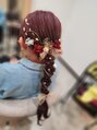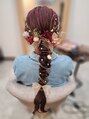 編みおろしヘアセット丸型三つ編みなど、ポコンポコンとなるように編んで、水引きや飾りつけしてます。