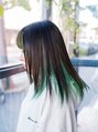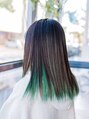 インナーカラーに綺麗なグリーンをプラス。前髪から後ろにかけてややグラデーションになるような絶妙な色みも可愛くて◎ケアブリーチ使用でダメージは最小限にしてます。気に入ったスタイルがありましたら是非【ブックマーク】して頂くと便利です♪