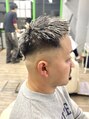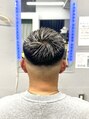 スキンフェードにホワイトメッシュを入れたスタイルです。フェザーアップなのでポマードで簡単にセットできます。短髪が良くて少しアクセントつけたい方にオススメです。メッシュ入れるだけでオシャレ度アップします。