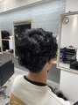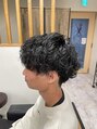 マッシュベースのツーブロックスタイルにスパイラルパーマを合わせたスタイルです。ツイストスパイラルと違い捻らないのでチリつかずカール感が強いので優しい男性の印象を得られます。