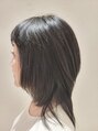 ウルフ。サイドは短め、バックは長めのミディアムレイヤースタイル。イノアカラーとファイバープレックス、ケラスターゼカクテルトリートメントの組み合わせで髪が傷まないように艶感アップサイド。