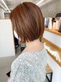 カラーはブリーチを使わない明るさのベージュです!赤味が気になる方はアッシュ系のカラーでするのがオススメです!カットは肩上のボブで、乾かすだけでまとまるボブです!スタイリングオイルをつけて馴染ませるだけで可愛くなれます!