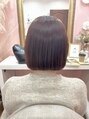 女子なら共感してくれるはず!このフラットなカットラインが可愛いんです☆やや前下がり気味の王道フラットボブ☆カラーはシアーなヴァイオレットピンクで品よく可愛く仕上げました♪やっぱり女子力あげるならピンク系がマストかも!?