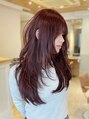 ロングベースから作るハイレイヤー◎ロングの長さを生かして顎下からザクザクにレイヤーを。ワンカールでもストレートでも可愛い大人気スタイルです◎ブリーチなしで作るワインレッドとの相性も◎