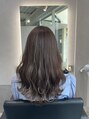 ロングレイヤーカット!+顔周りカットもさせていただいており小顔に!カラーは艶感の出る暗めのグレージュ系で赤み、オレンジみをなくしてあります!ウェーブ巻きで仕上げさせていただきました!もちろんストレートでも可愛いです!