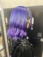 3回以上のブリーチの状態からのパープルワンポイントマゼンタカラーです!カラーバターで塗布してますので別料金になります。全頭\6000 ポイントカラー\3000気軽にご相談ください♪