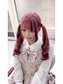 ベースはブリーチオンカラーでチェリーピンクに、ブラックのシールエクステで前髪とインナーをデザイン☆カラーでブラックのデザインに抵抗のある方にエクステでのブラックデザインはオススメ☆