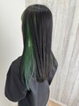 インナーをブリーチしてからカラーバターでグリーンに染めたデザインです!