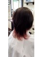 2回ブリーチ施した、インナーカラー部分のオンカラーは、『カシス』。全体白髪染めは、ローズピンクとココアブラウン。