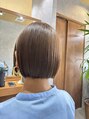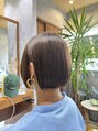 大人のミニボブ。首がきれいに見えるえり足ギリギリの長さにカット。大人キレイめボブは『艶』と『カットライン』が大切。カラーは柔らかさのあるベージュ系で。イエベさんに似合うベージュ×オリーブで華やかな印象に☆