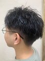 6ミリツーブロックのひと巻き半のツイストピンパーマ。7:3パートでオンオフでもキマる、オシャレ感スタイルに仕上げました。スタイリングはタオルドライでWAXをもみこむ感じで仕上げました。