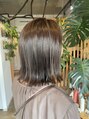 全頭ブリーチ後、ヴァイオレット強めのアッシュグレーをオンカラーしました。アヴェダのカラー剤は96%が植物由来成分。流山市・野田市でアヴェダカラーが体験出来るのは、Leaのみです。
