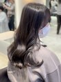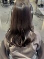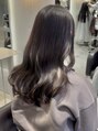 透明感たっぷりなグレージュカラーです。毛先まで艶が出るように毛量調整は控えめにしています。