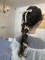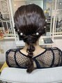 可愛らしさを出しつつ、フワフワさせすぎないスッキリさを出しているローポニーアレンジです★結婚式のお呼ばれアレンジやイベント毎にもピッタリのアレンジです!鎖骨下あたりの長さがあればできるスタイルです^^