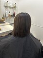 シェノンのプレミアムストレートで質感もしなやかなミディアムストレートスタイルに。定期的なヘアエステで髪質改善をしているので、ドライヤーだけでもまとまり、艶感◎
