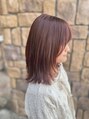 顔まわりにレイヤーが入ったスタイル。外ハネでも内巻きでも可愛い◎ブリーチなしで作るレッドカラーでツヤツヤの仕上がりです^^
