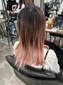 ボブにバッサリカットしてカラーもずっとピンク系カラーだったのを今回はブルーにイメージチェンジ!!ブリーチの回数が異なる部分があるのでブルーの濃さを調節して差が出にくいように薬剤を調合しました!ケアブリーチでダメージ最小限に^^