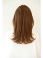 やや前下がりにカットした切りっぱなしスタイルあえてカットラインを残す事で毛先に厚みがでてオシャレ度UPカラーは全体にハイライトを入れて、グレージュカラーに!