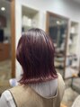 ルフレカラー新色スピネルを使って可愛いピンク系になりました!切りっぱなしで毛先に重みを出すことによって外ハネが可愛く綺麗にセット出来ます!