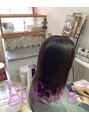 普段縮毛矯正をされていて細い毛質の為、アルカリ剤での施術は断毛の恐れがあったのでロハスカラー《根元アルカリ剤/中間~毛先は植物カラー)にて施術。お顔周りが華やかになるローズピンク系。さらにトリートメントされると重みがプラスされて、もちUp ◎