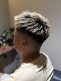 瀬田/フェザーショート 刈り上げセンターパート ホワイトブロンド エンドカラー 波打ちパーマ