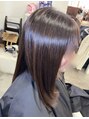 ミディアムヘアー。カラーは伸びても目立たないようにやや暗めのオーダーです。