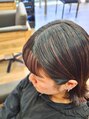 外はねパッツンボブ!お手入れがしやすいと人気です。表面前髪だけの、プレイングカラー!!ちょっとしたイメチェンにおすすめ♪根元が伸びても気にならないデザインカラーです。