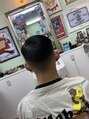 オーソドックスな、バーバースタイルのサイドパート、fadeの色彩を上げすぎずに、しっかりラインアップが映える様に、意識して、使っています。fadeの色彩をお客様の要望に応じてコントロールできるか、どうか?は、技術者の腕次第。お待ちしてます。