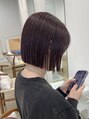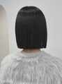 - 切りっぱなしのミニボブ。顔まわりにレイヤーカット。