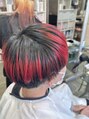 表面の毛先だけにカラーを仕込むことで、メッシュ風の仕上がりを楽しめるデザインになっています。マッシュベースでトップにレイヤーを入れることで、スタイリングをしっかりしなくても、カラーデザインを楽しめるスタイルになっています。