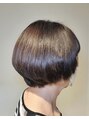 グラデーションボブ。襟足はスッキリさせ、後頭部は丸くして頭の形が良く見えるようにイノアカラーとケラスターゼカクテルトリートメントの組み合わせ。