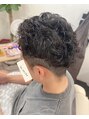 サイドと襟足をぐるっと刈り上げてスッキリさせ、トップはしっかりカール感を出した動きのあるパーマスタイル。シルエットが立体的で、バランス良く見えます。爽やかで、きちんと感とオシャレ感をどちらも叶えるスタイル *