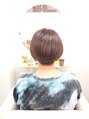 前下がりショートに、 顔周りを引き立てる太めのポイントハイライトをプラス。 ナチュラルな立体感と動きを演出しつつ、重たく見えないい抜け感スタイルに。 襟足は刈り上げですっきりと、メリハリのある大人ショートに仕上げました。