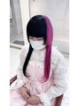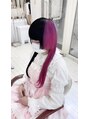 ベースはブリーチオンカラーでローズピンク×ブラックのツートンデザインに、今回シールエクステも染めてピンク×ブラックでロングウルフをデザイン☆今回はサイドで色を分けたツートンデザインが個性的で可愛い☆