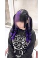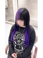 ベースはブリーチオンカラーでパープル×ブラックのバングツートンデザインに、今回エクステも染めてパープルをベースのロングにブラックでインナーデザイン☆ブラック×パープルのデザインロングげ可愛い☆