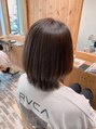 レイヤーボブスタイルにハイライトを入れてグレージュ系のカラーをオン赤味を削った透明感のあるカラーです。