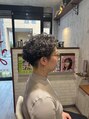 サイドツーブロック、バック刈り上げ、トップ強めパーマUPバングスタイル