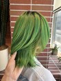 お顔周りのレイヤーと鮮やかなグリーンが可愛いスタイルです♪伸びてきた根元も活かしたオシャレなカラーです!