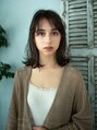 オイルでウエット感のあるミディアムスタイルです。 巻きすぎず、ウエーブと毛先のカール感をだしています。 顔まわりにいれたレイヤーが今っぽいスタイルです。 バングはシースルーで細く薄く作るのがポイントです。