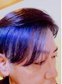 片側のみインナーカラーを施術しました。白髪染め5レベルで染めていたのでブリーチ2回してから塩基性カラーをオン。派手になり過ぎないデザインで◎(光の加減で3枚目の色合いはビビットに写ってます)